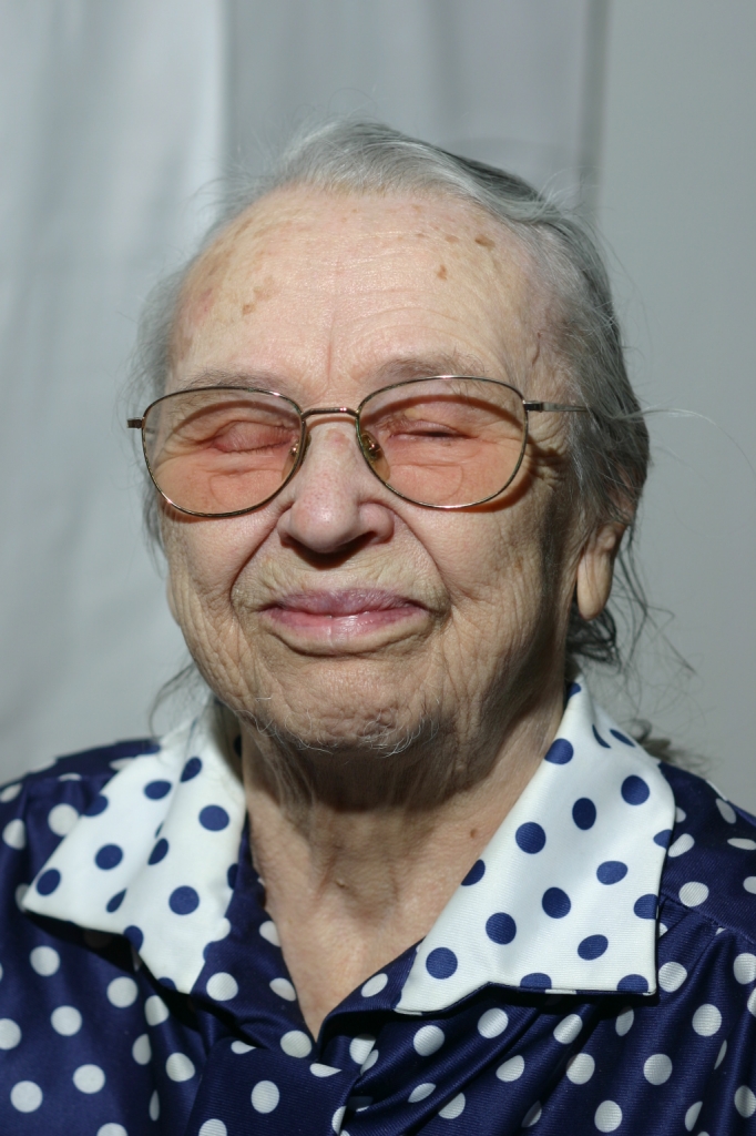 Schön und gut, ein weißes Bettlaken wurde über die Stubentür gehangen und Mutti auf einem Höckerchen davor platziert. Erstmal saß sie da, wie ein Häufchen Unglück und sollte freundlich in die Kamera sehen.